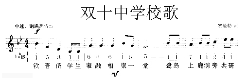 双十中学校歌 五线谱/简谱/高清晰乐谱免费下载方式 1、请到厦门吉他网上层目录:吉他谱下载(曲目列表); 2、请到网站首页左侧——站内搜索——(下拉菜单)吉他谱下载——输入歌曲名称