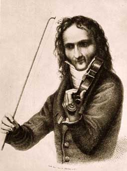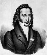 尼科罗·帕格尼尼(Niccolo Paganini ,1782.10.27--1840.5.27) 帕格尼尼,意大利小提琴演奏家、作曲家。于1782年10月27日出生在意大利北部,靠近地中海的良港热那亚。父亲是小商人,没受多少教育,但非常喜爱音乐,是一个吉他和曼陀铃业余爱好者。父亲教他弹曼托林并请了一位剧院小提琴手教他小提琴,后又与热那亚最有名的小提琴家学习。他幼年充分显露出音乐才能,不论什么曲子,他立刻能轻松地演奏出来。同时他还学习作曲。八岁就写小提琴奏鸣曲。11岁,在热那亚举行公开演奏会,获极大成功。他13岁开始旅行演出。他十四、五岁时,当时法国著名小提琴家鲁道尔夫•克鲁采尔,也就是贝多芬写的《克鲁采尔奏鸣曲》所献给的那个人,听了他的演奏时被惊呆了,简直不相信自己的耳朵。1805年任卢加宫廷乐队小提琴独奏家。1825年后,他足迹遍及维也纳、德国、巴黎和英国,他还会演奏吉他和中提琴。在他的《二十四首随想曲》中,表现了高超的技巧。他的技巧影响了后来的小提琴作品,也影响了钢琴的技巧和作品。他的作品有《bE大调协奏曲》、《二十四首随想曲》、《女巫之舞》、《无穷动》、《威尼斯狂欢节》、《军队奏鸣曲》、《拿破仑奏鸣曲》、《爱的场面》、《魔女》、《D大调小提琴协奏曲》。另外,还作有吉他曲二百首,以及各种室内乐曲。1840年5月27日夜,这位被誉为“小提琴之神”和“音乐之王”的人离开了人世,年仅五十八岁。 幼年即学琴,后去热那亚和帕尔马学习,九岁首次登台演奏自己的作品,十三岁旅行演出,足迹遍及维也纳、德国、巴黎和英国,还会演奏吉他和中提琴。在他的《二十四首随想曲》中,显示出惊人的才华。 他的演奏将小提琴的技巧达到了无与伦比的地步,为小提琴演奏艺术的发展作出了不可磨灭的贡献,不仅影响了后来的小提琴作品,也影响了钢琴的技巧和作品。他还将吉他的技巧用于小提琴的演奏,大大丰富了小提琴的表现力。由于技巧保密,生前出版作品极少,绝大部分系去世后出版。作品有《bE大调协奏曲》、《二十四首随想曲》、《女巫之舞》、《无穷动》、《威尼斯狂欢节》等。著名的音乐评论家勃拉兹称帕格尼尼是“操琴弓的魔术师”,歌德评价他“在琴弦上展现了火一样的灵魂”。 一位诗人说:世界上的音乐全被世上的男人手掌握着,而女人则是掌握男人手的人。这话搁在意大利音乐家小提琴大师帕格尼尼身上太准确了。帕格尼尼是意大利著名的小提琴家、作曲家。他出生于意大利北部热那亚,父亲安东尼欧·帕格尼尼,母亲狄蕾莎.波姬亚蒂,皆未受过正式音乐教育,夫妇俩在酒店唱歌赚取赏金,帕格尼尼大概是继承了父母天份。他的身体似乎天生就是拉琴的,他的肩膀,他的手肘,他的手腕关节异常柔软。宽大的胸幅使他不必使用肩垫及腮托,小脑特别发达,听觉格外敏感,即使是用调音不准的琴依然可以拉出准确的音.还有他可以将曲子任意升高或降低半音来拉,当然不是基于调音,而是从指法的改变。学过乐器的人都知道一首曲子调半音以后,会使得升降记号大变,即使看谱已很困难,何况是即时的演奏。 帕格尼尼的手是不可思议的,一般小提琴家必须在高把位才能用1、3指在两条弦上拉出八度音,但据说帕格尼尼可以用四根手指在四条弦拉出四个八度,这相当于在手掌弯曲状态下,食指和小指指尖要相距至少20公分以上。 帕格尼尼的身材瘦长,拉琴时情绪激越,似痴似醉,如魔鬼附身.技巧之精湛。 在帕格尼尼在五十八年的音乐生涯中,创作了二十四首小提琴随想曲,和.《钟》、《狩猎》的名曲。他才华横溢,风流倜傥,他一度挥金如土,赌博成性,与妓女鬼混。那双拉琴的手,那双抓住音乐翅膀的手,一只伸进了肮脏的赌场,一只伸进了狐臭飘香的妓女幔帐。他把金质的音符当作了筹码,输掉了不仅是自己的尊严还有自己的人格;他把生命最精彩的部分,输给了龌龊的温床和淫荡的女人。他的肉体和灵魂被女人掌握和玩弄。他把才气和傲骨输了个净光。 脱掉音乐的盛装,帕格尼尼背上了桎枯一样的债务,他被饥饿、疾病困扰着,最后不得不将心爱的小提琴变卖度日。他的小提琴要比托查的杰西命运还惨。有人说,帕格尼尼的双手和灵魂,被撒旦掌握了。在帕格尼尼辉煌时期,人们聆听他的演奏时这样说:才华横溢的大师你拉错几个音符吧,那样我们觉得我们还像人类。 但帕格尼尼还算是幸运的,当他堕落到穷困潦倒的时候,一个善良的贵妇人,像天使一样降临到他的身边。这个贵妇人叫荻达。荻达清楚地知道,拯救帕格尼尼的生命和灵魂,必须从他的双手开始。因为帕格尼尼的堕落是双手开始的。首先,荻达将帕格尼尼接到乡村自己的一个别墅,对他开始了三年的精心调养。生活上的多滋味调养,心灵上的仁爱抚慰,音乐上的指导辅助。 荻达手把手地教会了帕格尼尼吉他演奏指法。使他学会了用手指拔出与长笛相似的泛音和双音,使帕格尼尼重新找到了手感和乐感,并创造出了小提琴演奏新技法。《狩猎》是帕格尼尼二十四首小提琴随想曲第九曲的别名,E大调,其中一段双音,象狩猎号角声。就是从荻达那里学来的。 手指的灵性恢复,取决于一位善良的女人之手的把握;而心灵的复苏,缘于荻达心灵和爱的呵护。帕格尼尼的音乐再生,是荻达用爱心拯救复活的。在乡村别墅静养的三年中,帕格尼尼学会了珍爱自己和他酷爱的