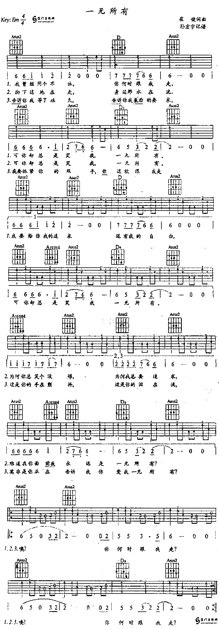 一无所有(崔健)六线谱/简谱/歌词/简介