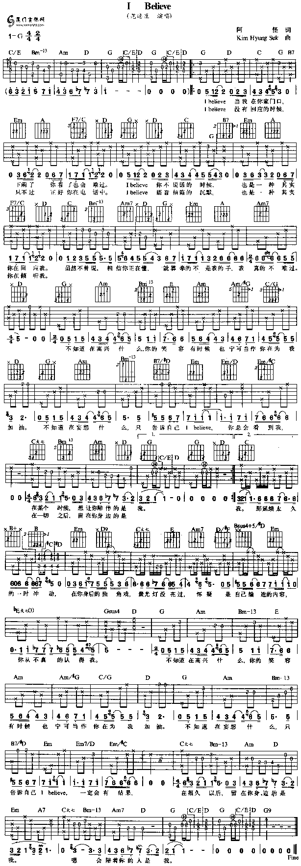 I Believe(范逸臣)六线谱/简谱/歌词/简介