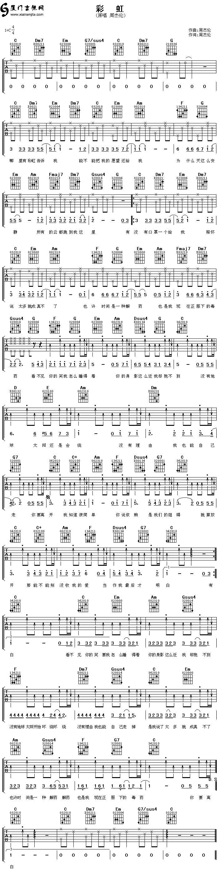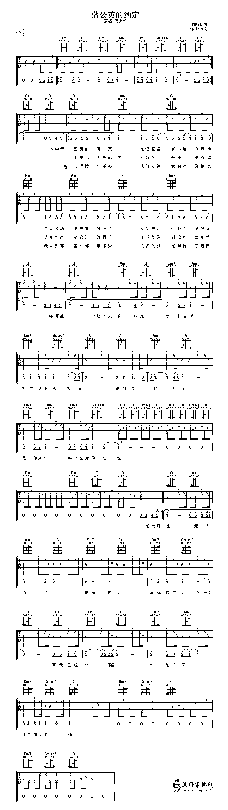 蒲公英的约定(周杰伦)六线谱/简谱/歌词