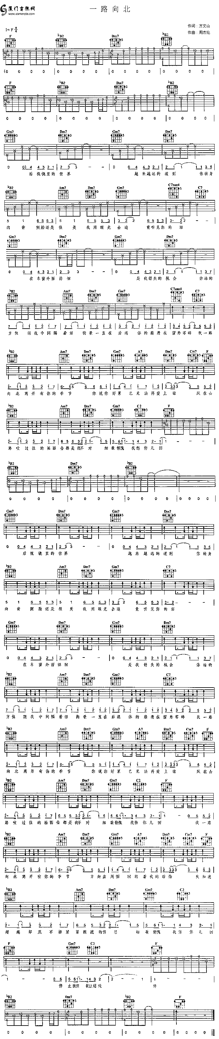 一路向北(周杰伦-11月的萧邦)六线谱/简谱/歌词