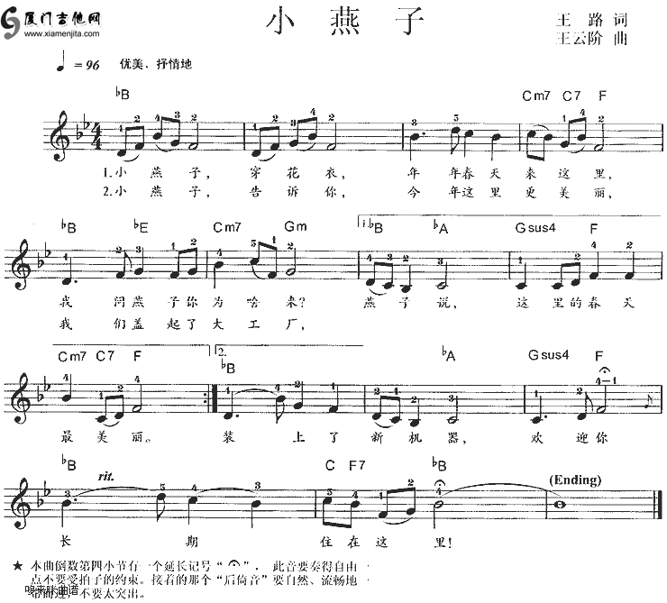 儿歌/小燕子(王云阶)简谱/五线谱/歌词/和弦