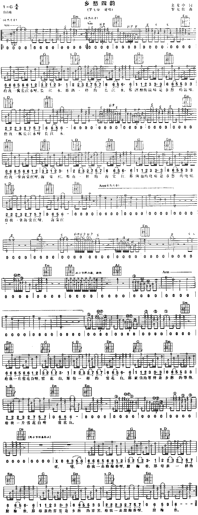 乡愁四韵(罗大佑)六线谱/简谱/歌词/杨弦简介