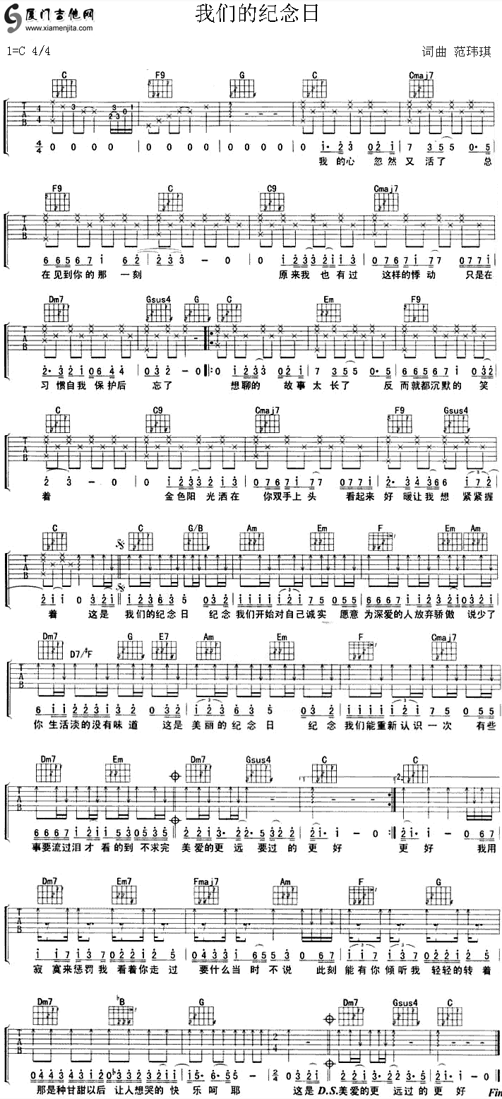 我们的纪念日(范玮琪)六线谱/简谱/歌词