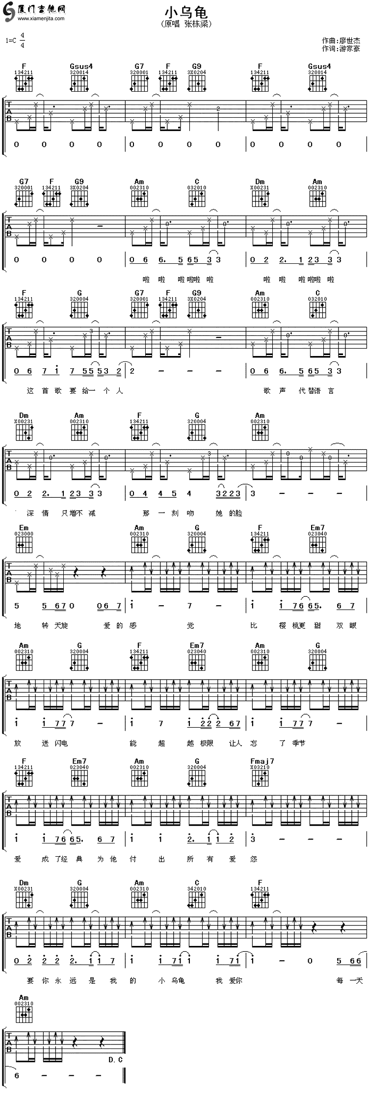 小乌龟 六线谱/简谱/歌词