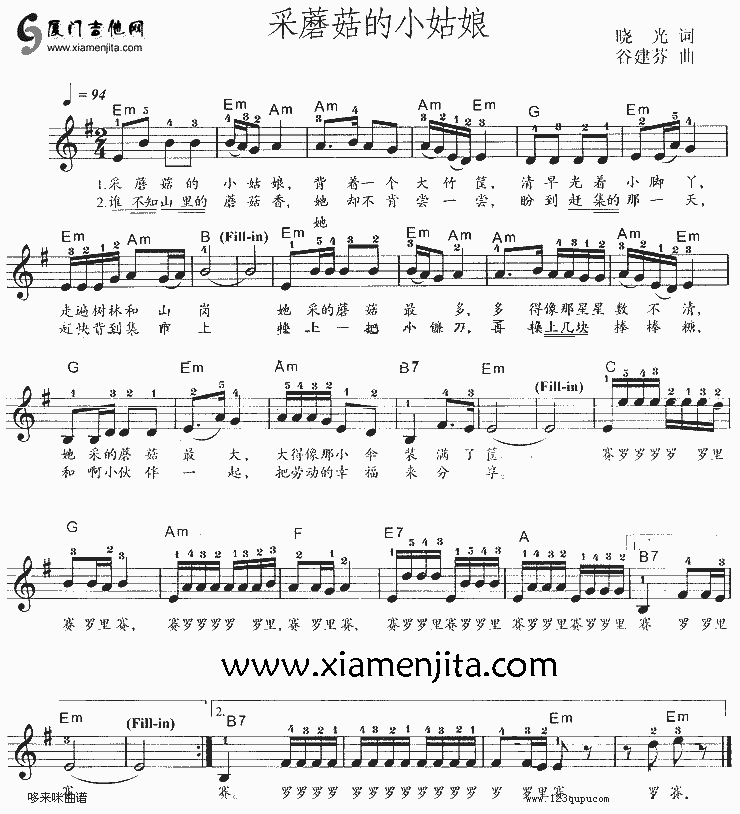 采蘑菇的小姑娘(谷建芬) 五线谱/歌词
