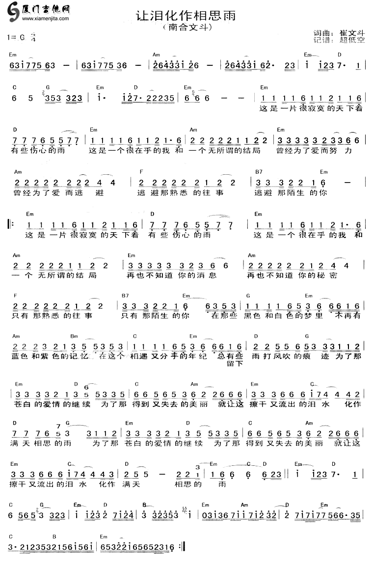 让泪化作相思雨(南合文斗) 简谱/歌词/和弦