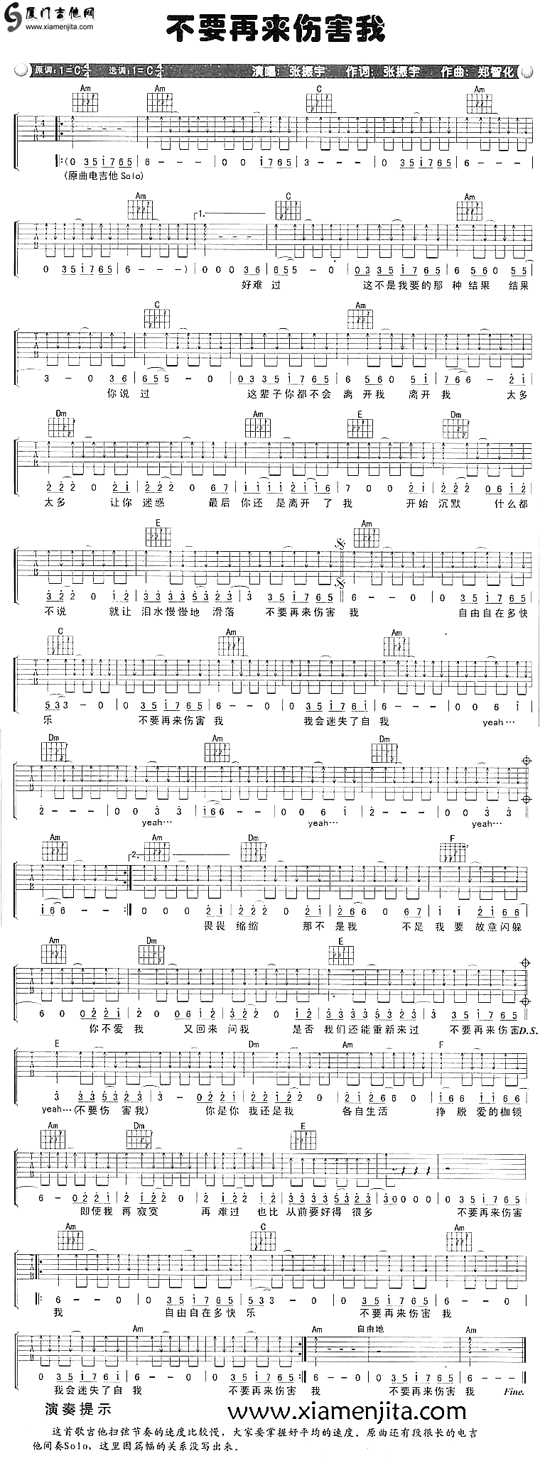 不要再来伤害我(张振宇) 六线谱/简谱/歌词