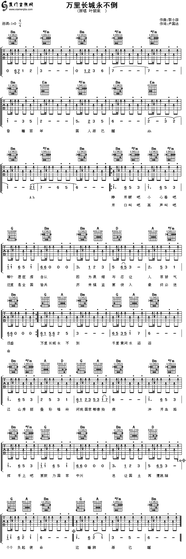 万里长城永不倒 六线谱/简谱/歌词/霍元甲简介