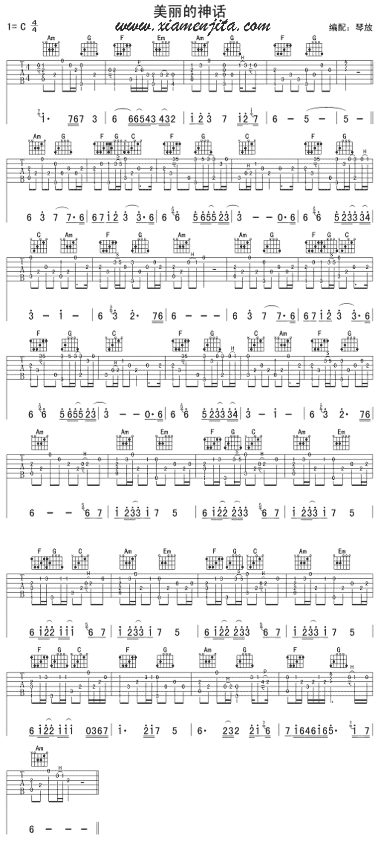 美丽的神话(孙楠/韩红) 吉他独奏六线谱/简谱