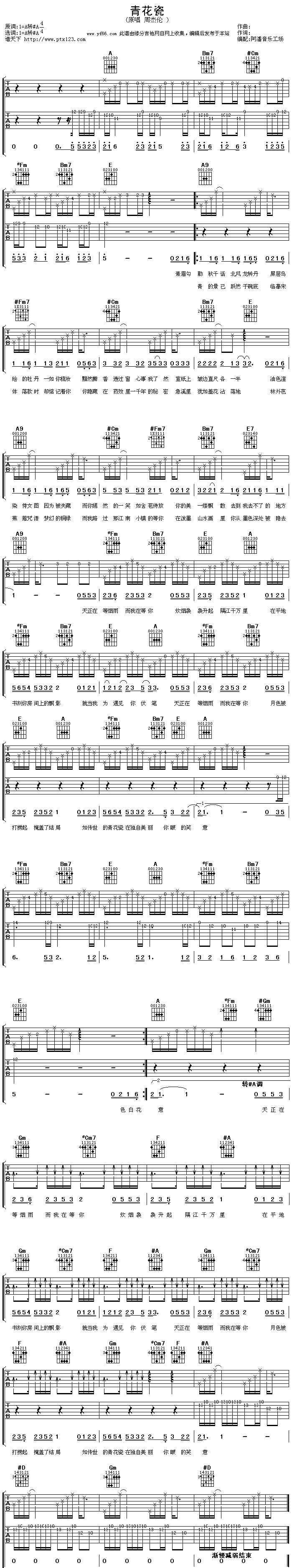 青花瓷(周杰伦) 双吉他/六线谱/简谱/歌词