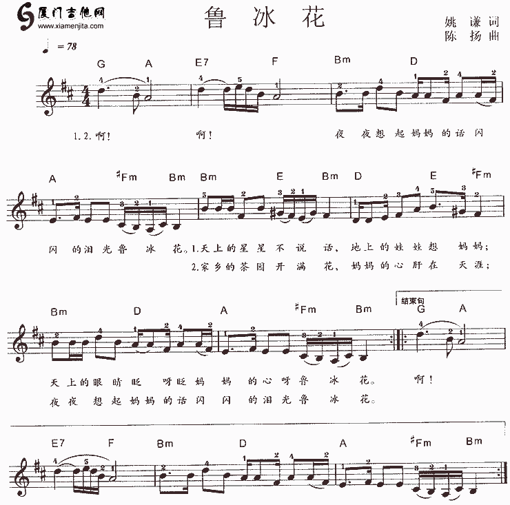 鲁冰花(甄妮) 五线谱/歌词/和弦/简介