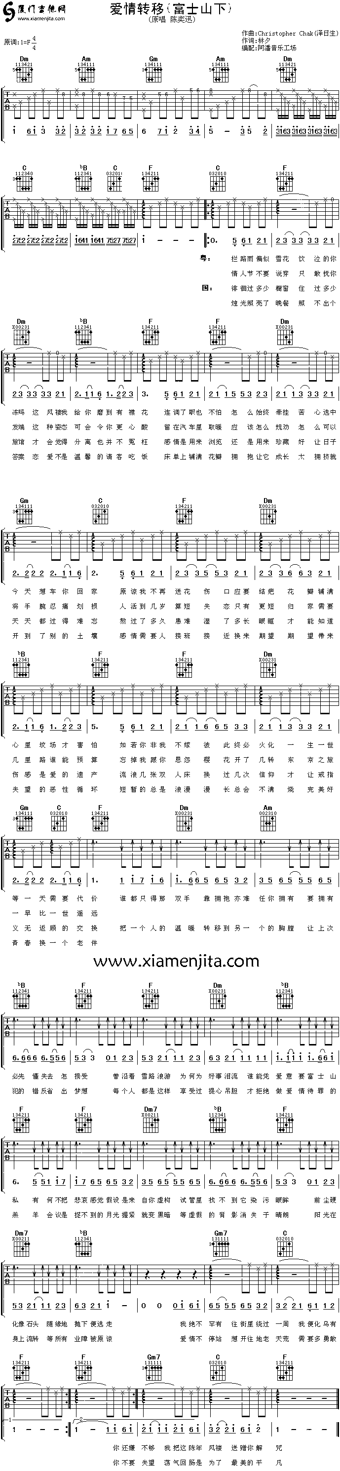 爱情转移(富士山下)陈奕迅 六线谱/简谱/歌词