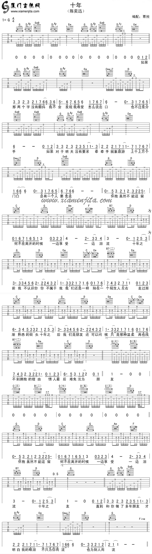 十年(陈奕迅) 六线谱/简谱