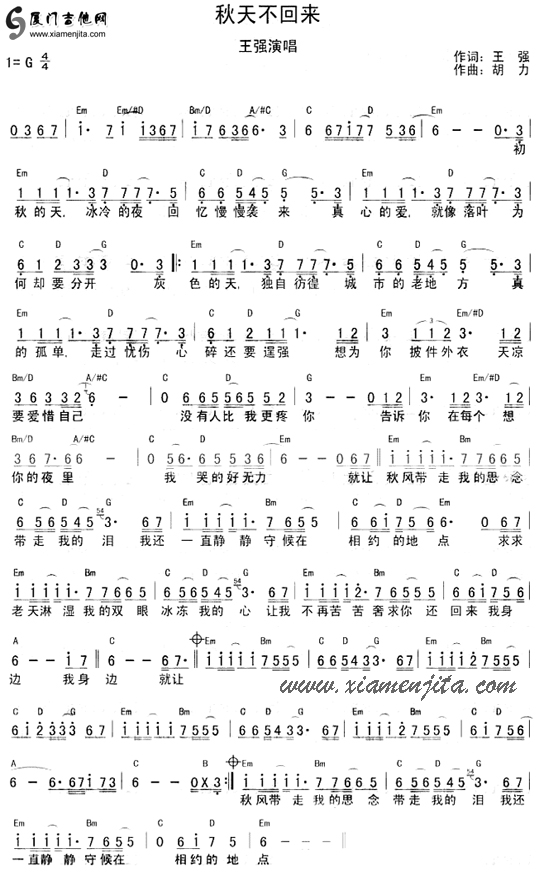 秋天不回来(王强) 简谱/歌词/和弦