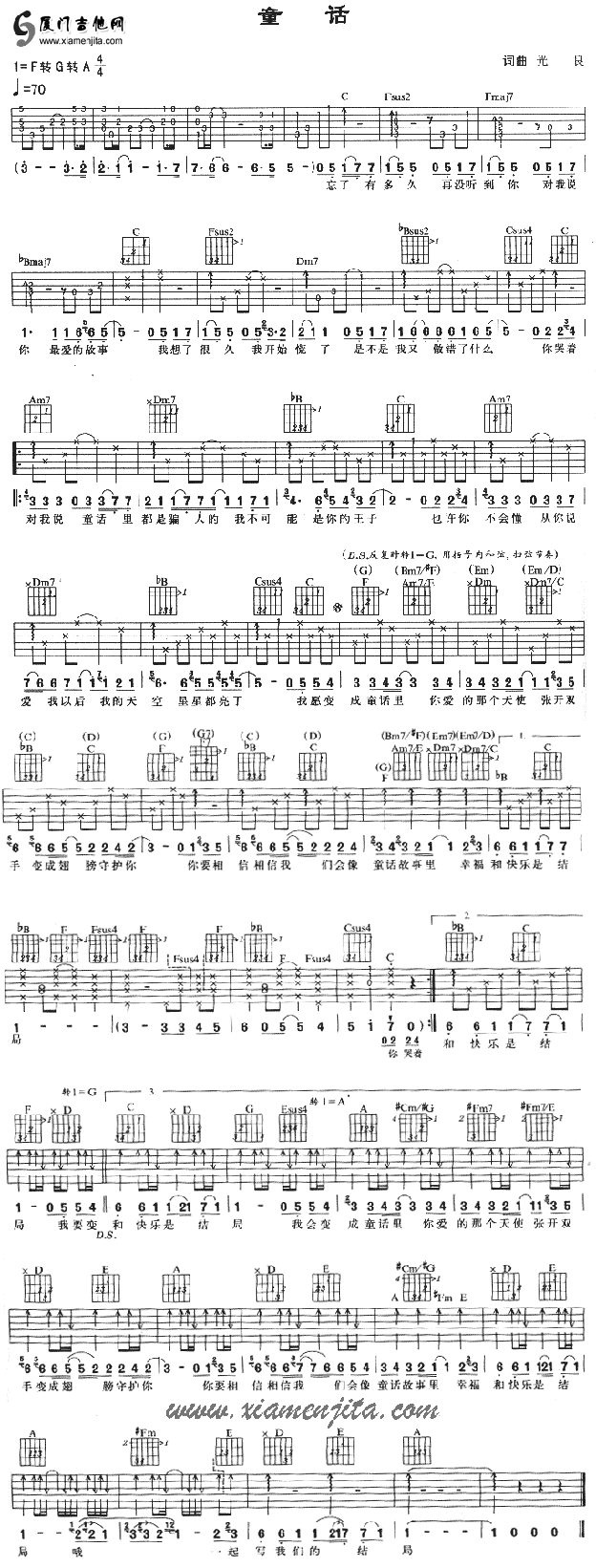 童话(光良) 六线谱/简谱/歌词