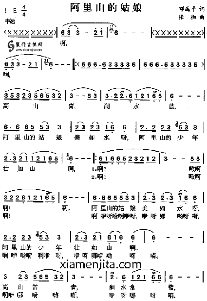 阿里山的姑娘。台湾,高山族。又有叫《高山青》