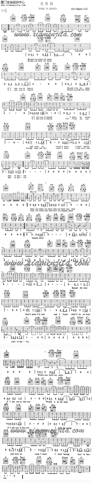 天堂泪 Tears in heaven 六线谱/简谱