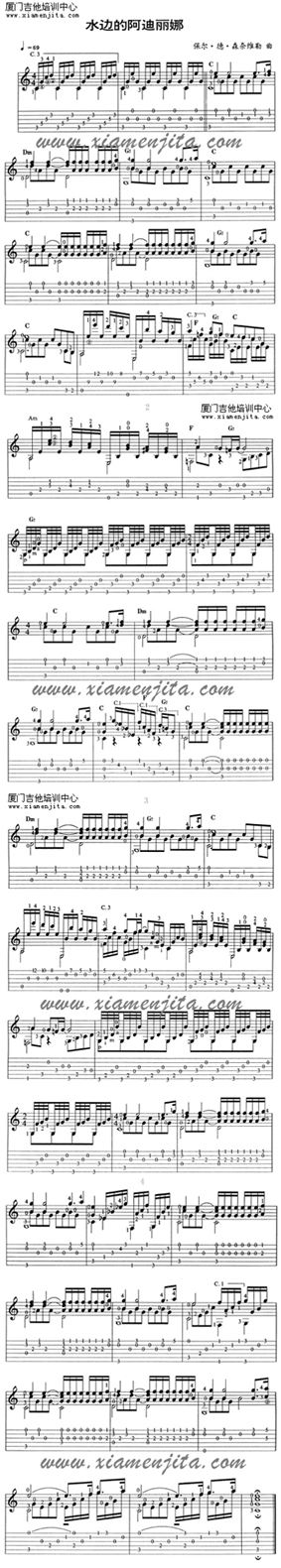 水边的阿迪丽娜 六线谱/五线谱