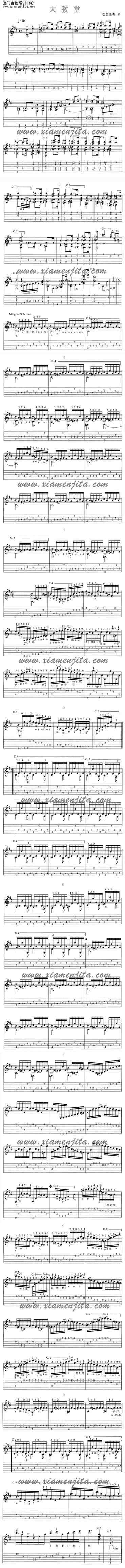 大圣堂(Barrios) 六线谱/五线谱