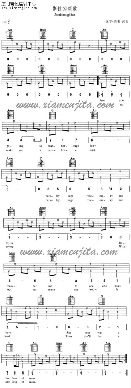 斯镇的颂歌 Scarborough fair 六线谱/简谱/汉-英文歌词